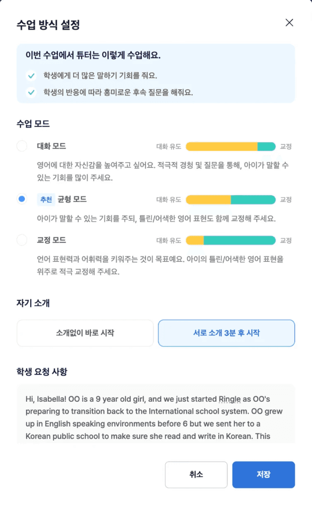 지유 학생은 Grade 7+ 학년 대화 연습 수업 방식과 사회·시사 위주로 수업했어요.