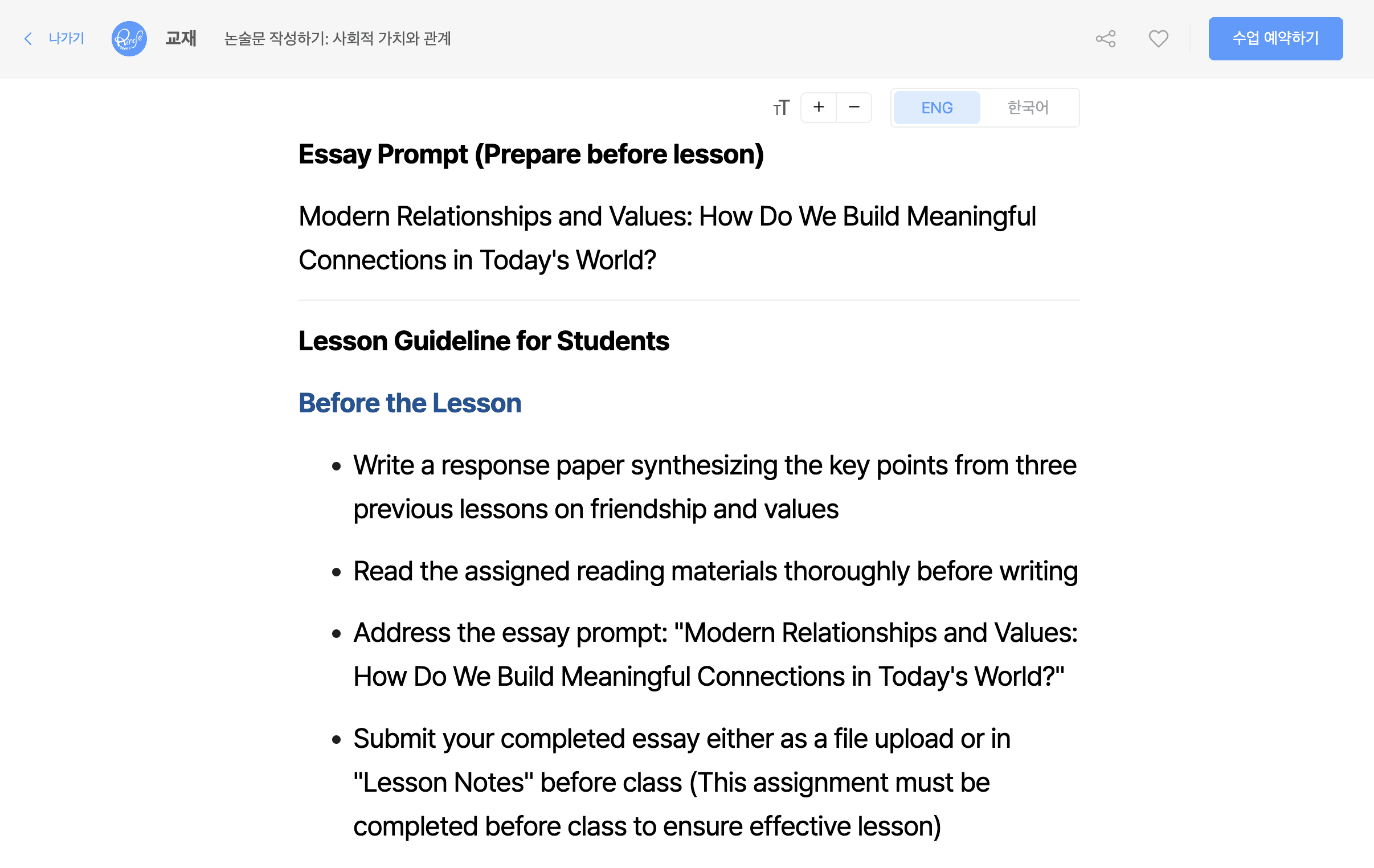 바탕으로 구성된 1:1 에세이/스피치 수업입니다.